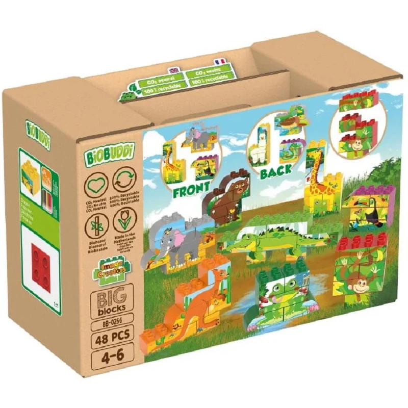 A BiOBUDDi biojátékai cukornádnövények maradványaiból készülnek Hollandiában. A színes elemek a gyerekek tapasztalataihoz igazodnak, és nem csak környezetbarátak, hanem újrahasznosíthatóak is. A teljes gyártási folyamat A-tól Z-ig CO2-semleges. A játékokat alaposan tesztelték, és minden feltételnek megfelelnek.