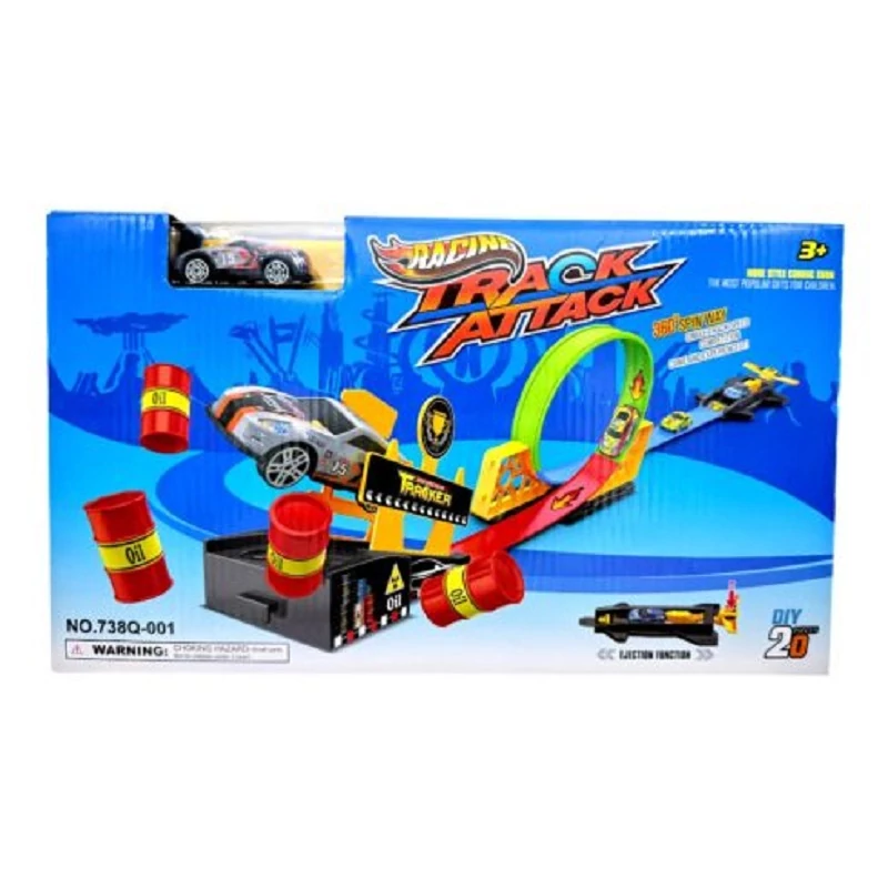 Igazi élmények várnak minden kis autórajongóra ezzel a kilövő katapultos autópálya szettel, amelyben a verseny izgalma és a sebesség varázsa egyszerre kel életre, hiszen a pálya teljes hossza 125 cm, így bőven van hely hatalmas ugratásokra, látványos fordulókra és olyan mutatványokra, amelyek még a felnőttek fantáziáját is megmozgatják, ráadásul a kezdéshez minden adott, mert a szett egy vagány kisautót is tartalmaz, amely már alig várja hogy rajthoz álljon és szélsebesen végigszáguldjon a pályán. Csak fel kell húzni a kilövőt, ráhelyezni az autót és már indulhat is a kaland, ami újra és újra mosolyt csal a gyerekek arcára.