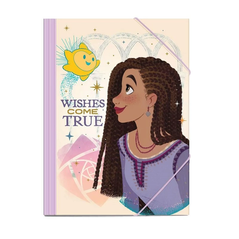 A Kívánság gumis mappa tökéletes választás azoknak a gyerekeknek, akik szeretik a Disney varázslatos világát. Ez a 25x35 cm méretű mappa elég tágas ahhoz, hogy az iskolai jegyzeteket, rajzokat és fontos dokumentumokat biztonságosan tárolhassák. A mappa borítóján a kedves Kívánság karakter látható, aki inspirációt nyújt a mindennapokhoz a "Wishes Come True" felirattal. A színes és vidám dizájn minden gyermeket örömmel tölt el, amikor csak rápillant. A mappa strapabíró műanyagból készült, ami hosszú távú használatot biztosít. A gumis záródásnak köszönhetően a tartalom biztonságban van, nem esik ki és nem gyűrődik meg a táskában. Ez a gumis mappa nem csak praktikus, hanem esztétikus is. Ideális ajándék lehet minden gyermek számára, aki szereti a Disney történeteket és karaktereket.