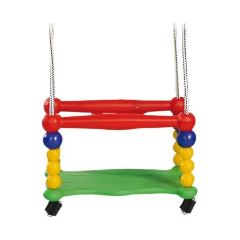 Hagyományos formájú műanyag hinta, kerti vagy beltéri hintázáshoz. A hinta ülőkerésze színes erős műanyagból készül. A hinta kötélzetének hossza állítható, így az adott magasságú hintaállványokhoz könnyen beállítható az ülőke magassága.
