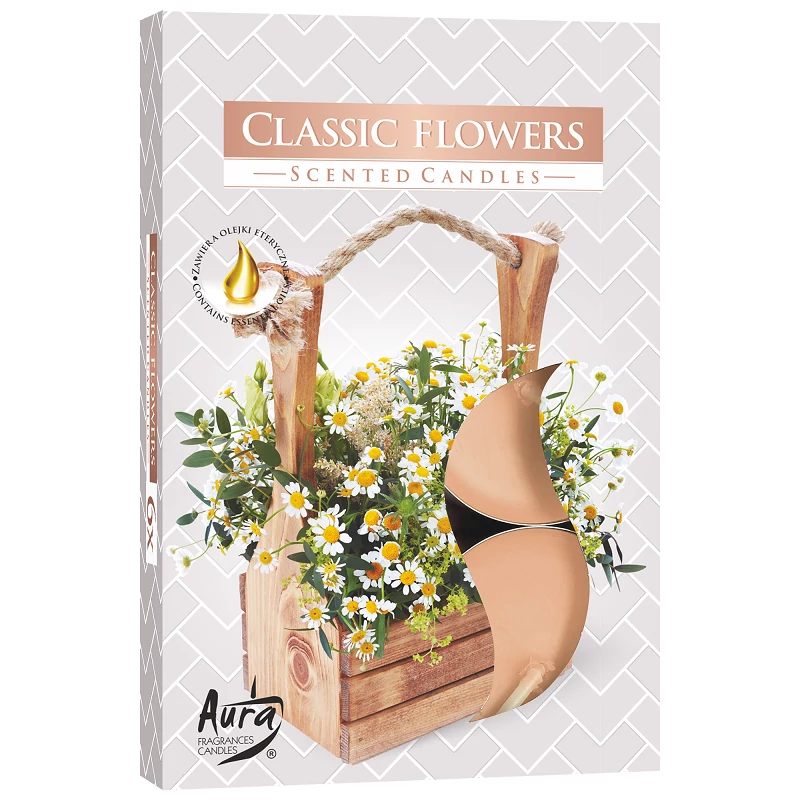 - Teamécses 6 db-os Klasszikus Virágok – finom, időtlen virágillatok harmonikus egyvelegét árasztó, hangulatos teamécses szett.
