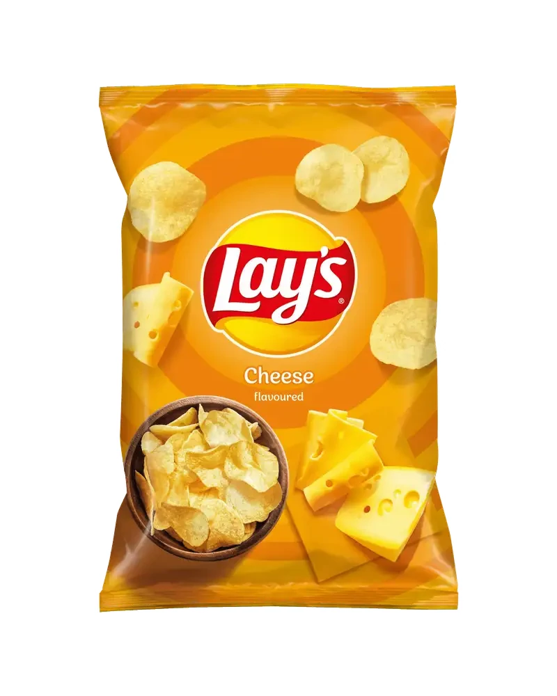 Burgonya, Növényi olajok (kukorica-étolaj, napraforgó-étolaj, repce-étolaj változó arányban), Ízesítő [étkezési só, tejsavópor tejből, búzaliszt, laktózpor tejből, tejsavófehérje por tejből, ízfokozók (nátrium-glutamát, dinátrium 5'-ribonukleotid), glükózszirup, aromák (tartalmaz tejet), savanyúságot szabályozó anyag (citromsav), sajtpor tejből, tejfehérje, színezékek (paprikakivonat, kurkumin), fokhagymapor, sovány tejpor]