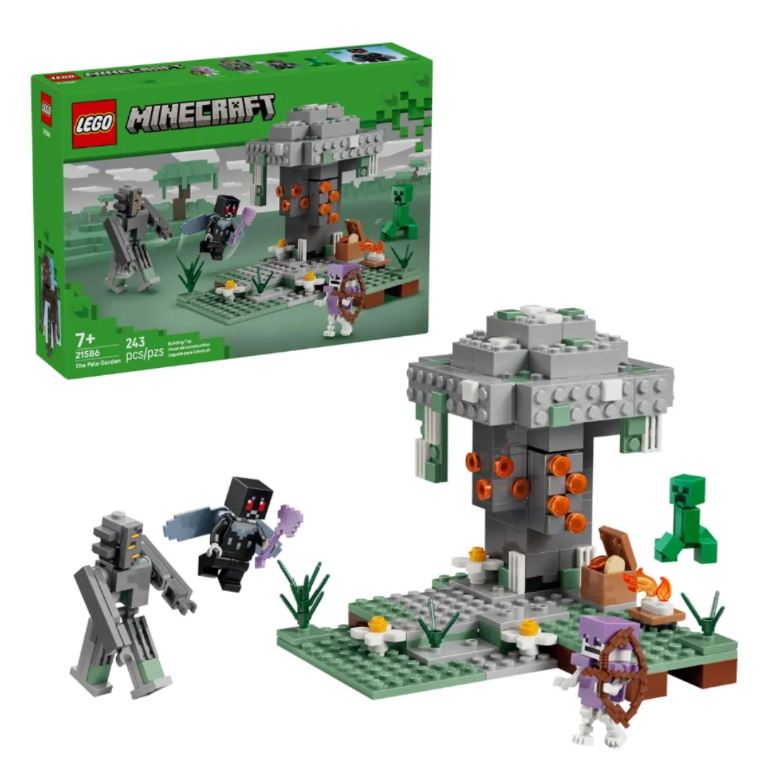 A gamerek beléphetnek a Minecraft® videójáték egyik különös és csodálatos biomjába, A sápadtkertbe (21586) ezzel a 7 éves vagy nagyobb fiúknak és lányoknak készült LEGO® építőjátékkal. Egy kockákból épült creaking támad a hős, szárnyas Mothmanre, miközben egy Creeper™ és egy csontváz is a sápadtkert biom körül ólálkodik. A mohával és eyeblossom virágokkal borított, játék sápadttölgy értékes gyantát tartalmaz, és magában rejti a mindennél értékesebb creakingszívet is, ami előbukkan, ha a gyerekek megnyomják a fa hátsó részén lévő pöcköt. A Mothman minifigura elytraszárnyakat visel, és egy elvarázsolt fejszét tart a kezében, a csontváz minifigura pedig gyémántpáncélt visel, és egy íj van nála. A fantáziadús játékra inspiráló további kiegészítők közé tartozik a tárolóláda, a gyantacsomó, a tábortűz és a disznókaraj. Ez a szett, ami egy remek születésnapi Minecraft ajándékötlet, elérhető a LEGO Builder appban is, ahol a gyerekek 3D-ben felnagyíthatják és megforgathatják a modelleket, továbbá nyomon követhetik a haladásukat a könnyen áttekinthető digitális útmutatókkal. A szett 243 elemből áll.