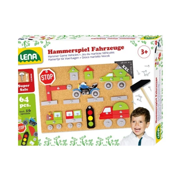 LENA: Kalapácsos parafatábla játékszett 64db-os - Járművek és közlekedés