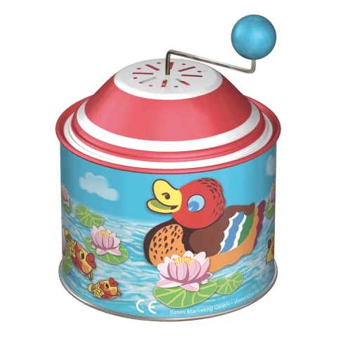 Most egy igazán tündéri és szórakoztató játékot szerezhetsz be a gyerkőcnek ennek a tündéri, kiskacsákkal díszített zenélő doboznak a formájában. A doboz egy kart tartalmaz felül, mely forgatásra lágy dallamokat generál. A strapabíró fém felépítésnek köszönhetően a dobozt már kisebb gyermekek is biztonságosan használhatják. A zenélő doboz használaton kívül a gyerekszoba egyik csodaszép kiegészítője is lehet.