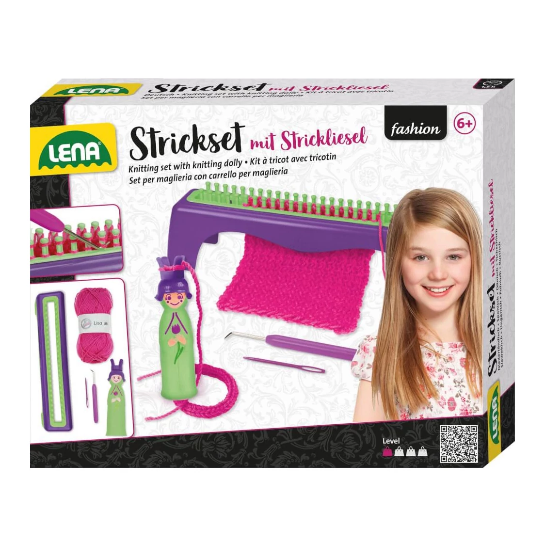 A LENA® kötőkészlet fonalakkal és körmöcskével egy teljes kreatív élményt kínál a kis kézművesek számára. Ez a komplex készlet magában foglal mindent, amire szükség van egy kötött projekt megalkotásához, ideértve a kötőtakarót, a kötőpaddal, a kötőtűt, a műanyag tűt és színben összehangolt kötőfonalat.