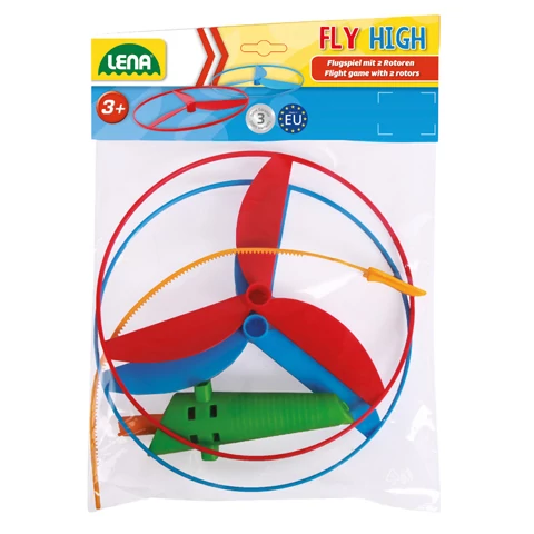 A tavaszi vagy nyári jó időben nem szabad kihagyni a szabadtéri játékokat. Hívd át pár barátodat, és játszatok egy hatalmasat, amiben társatok lehet ez a rotoros kilövőjáték. Lényege, hogy a sárga recézett műanyag zsineget nagy sebességgel ki kell húzni a helyéről, és ez a recék segítségével megpörgeti a piros rotorokat. Ennek köszönhetően egy szempillantás alatt a levegőben terem, és mint egy UFO szállna levegőben. Az összeállított játék mérete 22 x 34 x 5 cm, melyből a rotor átmérője 34 cm.