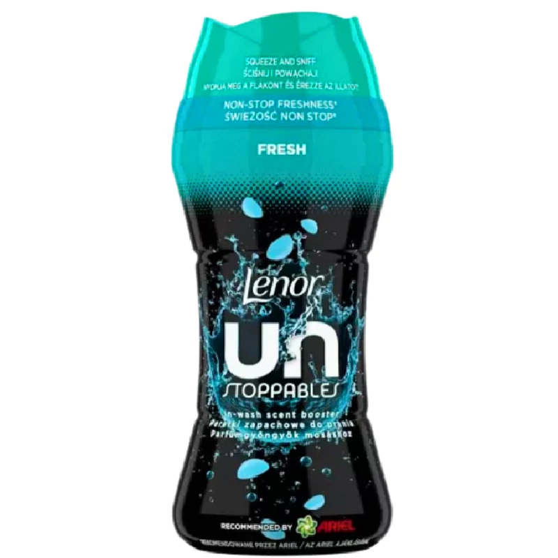 Fedezze fel a mosáshoz adható, hosszan tartó illatot nyújtó, frissességmegőrző technológiára épülő Lenor Unstoppables Fresh parfümgyöngyöket, amelyek akár 12 héten át tartó nonstop frissességet kölcsönöznek a tárolt ruháknak. A Lenor illatszakértői az Unstoppables Fresh parfümgyöngyöket ajánlják, ha a frissen mosott ruhák üde illatára vágyik. A Lenor Unstoppables illata minden mosás alkalmával frissességet kölcsönöz a ruháknak. Az Ariel ajánlásával minden mosáshoz hozzáadható a rendszeresen használt mosószerek mellé.