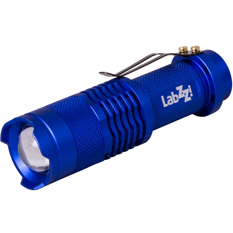 A Levenhuk LabZZ F3 zseblámpa egy kompakt és megbízható eszköz. A fénykibocsátásról egy 3 W-os LED-izzó gondoskodik, amely egy darab AA méretű elemmel működik (a készlet nem tartalmazza az elemet). A ház fémből készült, a rajta lévő kényelmes csíptetővel pedig ruhára vagy övre rögzíthető. A be-/kikapcsoló gomb a zseblámpa felső oldalán található.