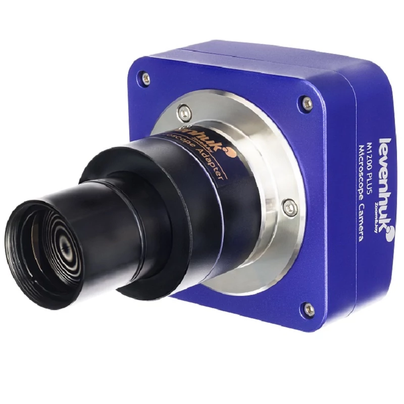 A 12 megapixeles Levenhuk M1200 PLUS digitális kamera nagy felbontású, részletgazdag fényképeket és videókat készít a mintákról bármely gyártó mikroszkópjával történő megfigyelés során. A kamerát 23,2 mm-es szemlencsecsőbe kell beszerelni (de a kamerához járó adapterrel 30 mm-es és 30,5 mm-es szemlencsecsőbe is beszerelhető). Ez az univerzális eszköz professzionális kutatásra és hobbihasználatra egyaránt alkalmas. A kamera digitális szemlencseként is használható, így a vizsgálat folyamata élőben követhető a számítógép képernyőjén.