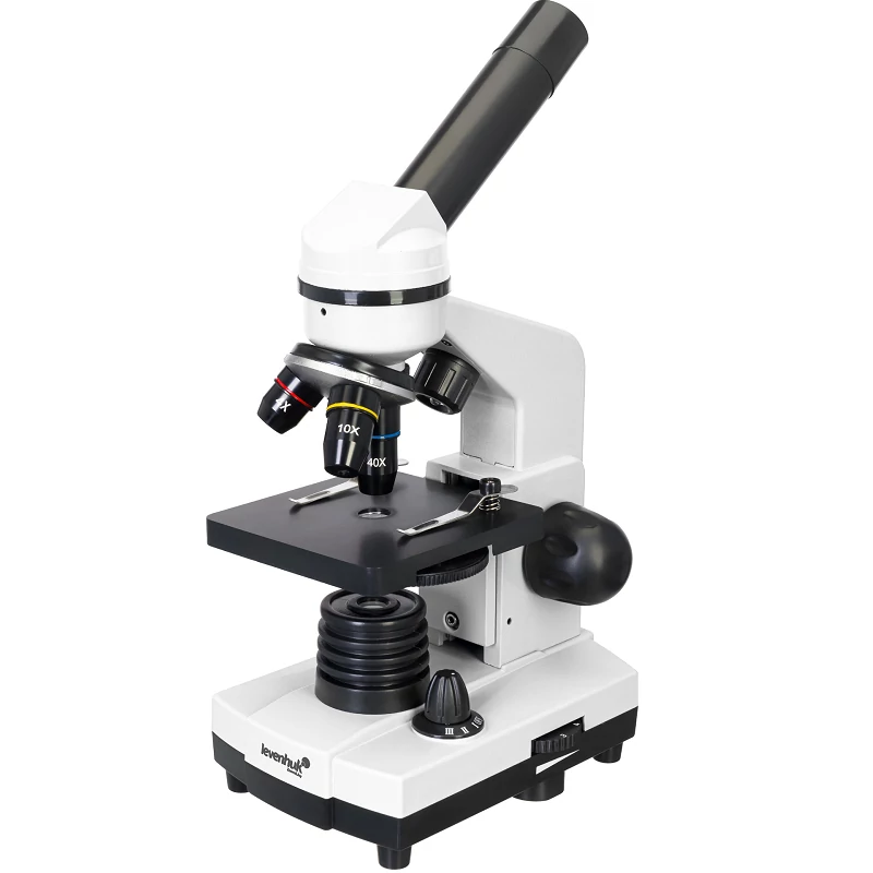 Optika A lencsék kiváló minőségű optikai üvegből készültek, ami rendkívül jó átláthatóságot biztosít és nem torzítja a képet. A még jobb képminőség érdekében az optikai felületek több rétegben tükröződés-gátló bevonattal vannak ellátva. A mikroszkóp revolverfejében három előre telepített objektív található, amelyek nagyítása 40x, 100x és 400x. A kívánt nagyítás beállításához egyszerűen csak forgasd el a revolverfejet.
