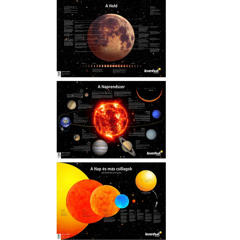 Összeállítottunk egy kiváló minőségű, fényes poszterekből álló, nagyszerű gyűjteményt – kifejezetten Önnek. Azontúl, hogy nagyszerűen mutat a gyerekszobában, a gyermekek megtanulhatják róla a fontosabb tudományos tudnivalókat az égitestekről.