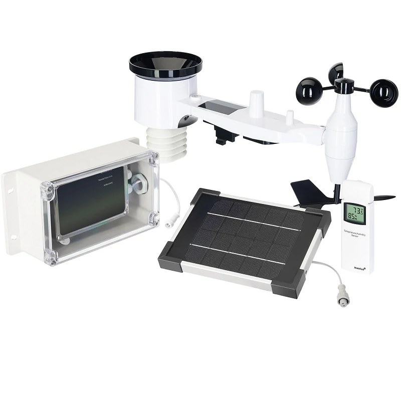 A Levenhuk Wezzer PRO LP700 időjárás-állomás olyan modern berendezés, amely mind a beltéri, mind a kültéri környezetről pontos információval szolgál. A készülék pontosan rögzíti a légköri nyomást, a hőmérsékletet és a levegő páratartalmát beltérben, és még több paramétert kültéren: a hőmérsékletet, a páratartalmat, a szélirányt, a szélsebességet, a csapadék mennyiségét, a fényerősséget és UV-indexet. Az időjárás-állomás tökéletes otthoni használatra, valamint mezőgazdasági céllal az időjárási viszonyok értékelésére.