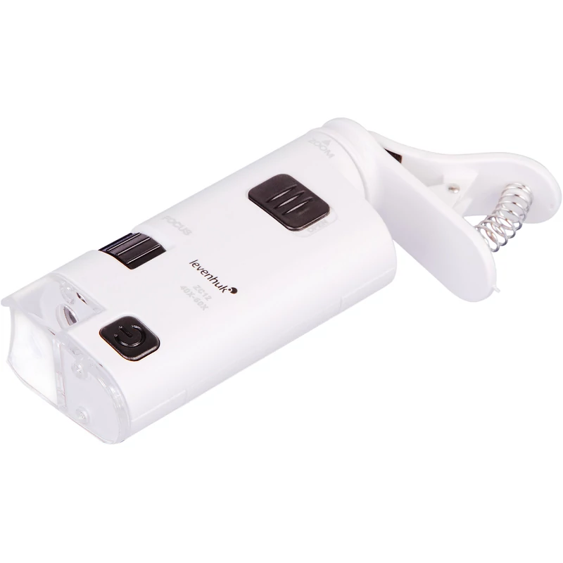 - Zsebmikroszkóp csíptetővel mobileszközhöz való csatlakoztatás érdekében