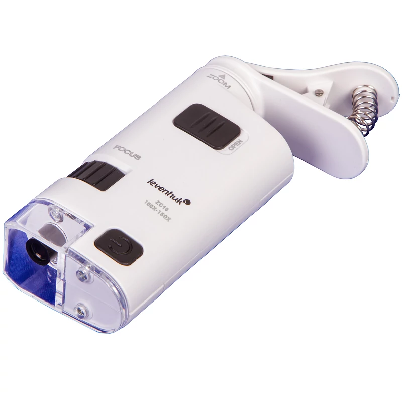 - Zsebmikroszkóp csíptetővel mobileszközhöz való csatlakoztatás érdekében