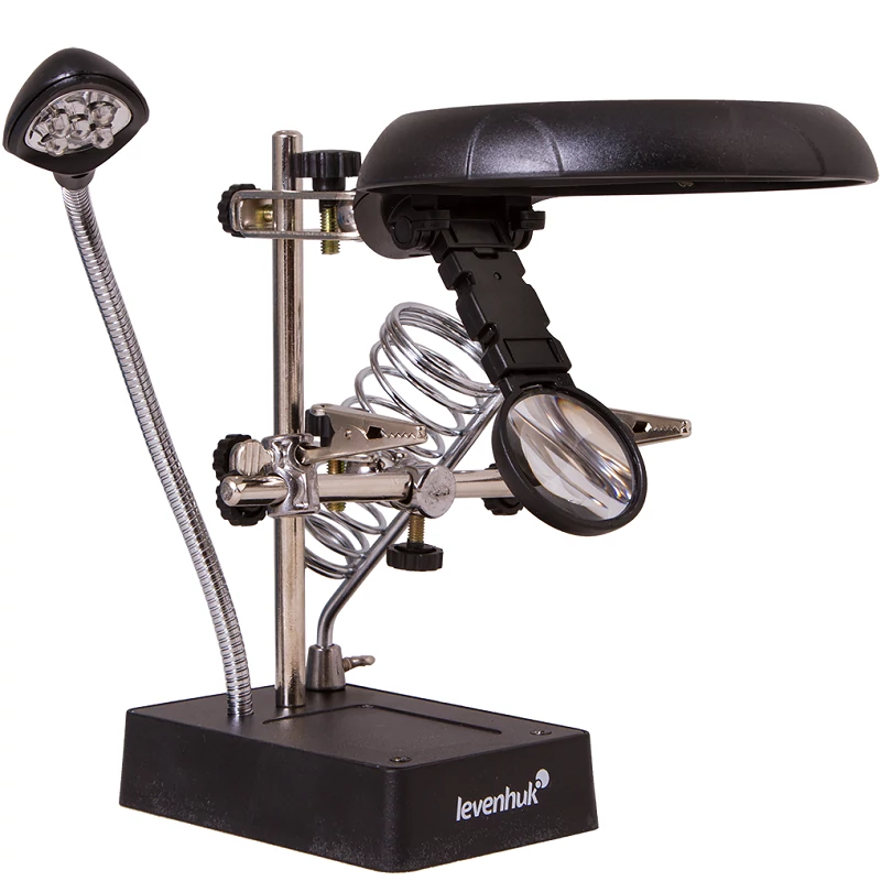 A Levenhuk Zeno Desk D11 nagyító kombinálható lencsékkel, LED-világítással, rugalmas nyakkal, „harmadik kéz” eszközzel és egy munkaeszközök számára készült tartóval van felszerelve. Elengedhetetlen segédeszköz mindenkinek, aki aprólékos kézimunkát végez, például ékszerészeknek, villanyszerelőknek, órásmestereknek vagy modellezőknek.