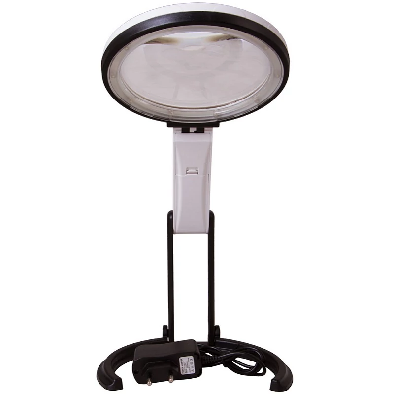 A Levenhuk Zeno Desk D7 egy kényelmesen használható, asztali eszköz nagy átmérőjű bifokális lencsével. Tökéletesen megfelel hosszú ideig tartó, közeli vizsgálatokhoz, kis tárgyak javításához, alkotáshoz vagy olvasáshoz. A kihajtható nyaknak köszönhetően az eszköz könnyedén, három lépésben átalakítható klasszikus kézi nagyítóvá. A bifokális lencse 2-szeres és 5-szörös nagyítást tesz lehetővé. A fényes fénykibocsátó diódák a lencse peremén helyezkednek el. A látómezőben lévő tárgyat egyenletesen, árnyékok nélkül világítják meg. A világítás A/C adapterrel vagy elemekkel működik.