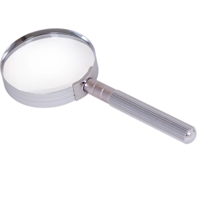 Ez a masszív nagyító ellenáll az ütéseknek. Fém nyele kényelmes és megbízható fogást biztosít.