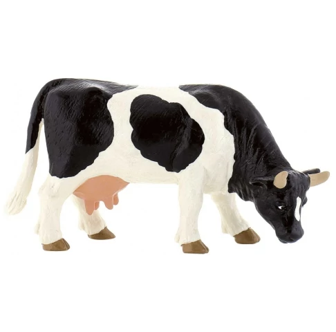 Ez a látványosan tarka, fekete foltokkal díszített tehén rendkívül részletgazdag kidolgozást kapott, melyet kézi festéssel koronázott meg a gyártó.