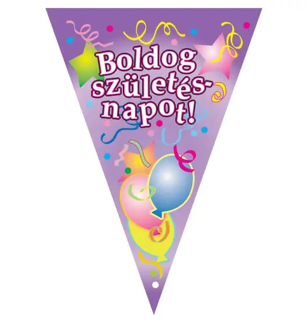 Lila party zászlófüzér Boldog születésnapot felirattal