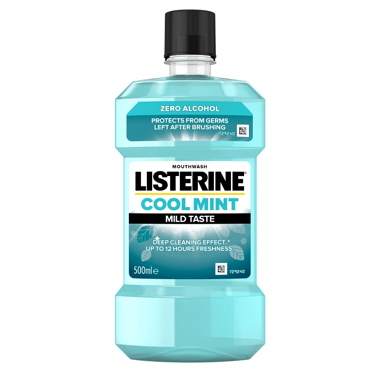 A Listerine Cool Mint Mild Taste szájöblögető rendszeres, napi kétszeri használat mellett hatékonyan küzd a kórokozókkal, melyek a lepedék és az ínygyulladás okozói. A zero alkohol formulájának köszönhetően képes eltávolítani a fogmosás után szájban maradt és a lepedékképződés során keletkező baktériumok 97%-át. Ezek a felelősek a rossz leheletért is, melytől segít megszabadulni. A Listerine Cool Mint Mild Taste azok számára is lehetővé teszi a szájöblögető használatát, akik túl erősnek találják az alkoholt tartalmazó egyéb szájöblögető termékeket. Pusztán fél perc szájöblögetés során képes kifejteni hatását és friss lehelet biztosítani, fluorid tartalmával pedig hozzájárul a fogszuvasodás elleni védelemhez is. Az 500 ml-es kiszerelés tökéletes az otthoni, mindennapos használathoz. A flakonját úgy tervezték, hogy még kis kezekkel is könnyen meg lehessen fogni és pontosan adagolni.