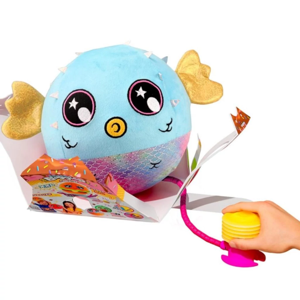 A Little Biggies Felfújható mini plüss gömbhal egy mókás és puha barát, amely igazán különleges élményt nyújt a gyerekeknek! Nyisd ki a csomagolás oldalát, és használd a mellékelt pumpát, hogy felfújd a bájos gömbhalat, amíg teljes méretére nem nő, és ki nem bújik a dobozból. Ezek a puha, összenyomható squishy játékok tökéletesek ölelgetésre és játékra. A plüss gömbhal 22 cm szélesre, magasra és mélyre fújható, így ideális méretű társ a mindennapi kalandokhoz. A szettben található pumpa biztosítja, hogy könnyedén életre kelthesd a kis plüss barátodat. Ez a szuper cuki gömbhal 3-10 éves gyerekek számára ajánlott.