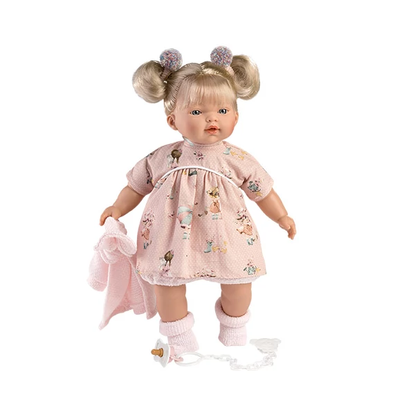 Llorens: Aitana síró baba cumival, rózsaszín kardigánban 33cm