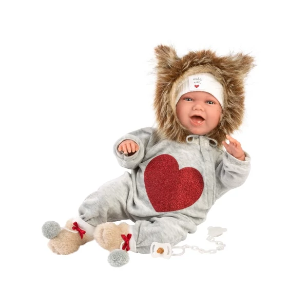 Llorens: Mimi Sonrisas 42cm-es kacagó újszülött baba szívecskés pizsamában