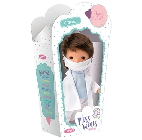 A Miss Mini babák legújabb tagjai segítenek a kislányoknak, hogy egy igazi orvosi csapatot állítsanak össze, aminek az egyik legjobb doktora ez a fiú baba lehet. A barna hajú orvos baba a szokásos fehér köpenyben és maszkban érkezik megvizsgálni a betegeket. A Llorens babák rendkívül részletgazdag kialakításnak köszönhetően valódi, élményekben gazdag játékélményt nyújtanak a gyerekeknek, amelyeket a cserélhető babaruhák tesznek még változatosabbá. Természetesen a babák műanyag részei mentesek mindenféle káros és allergén anyagtól.