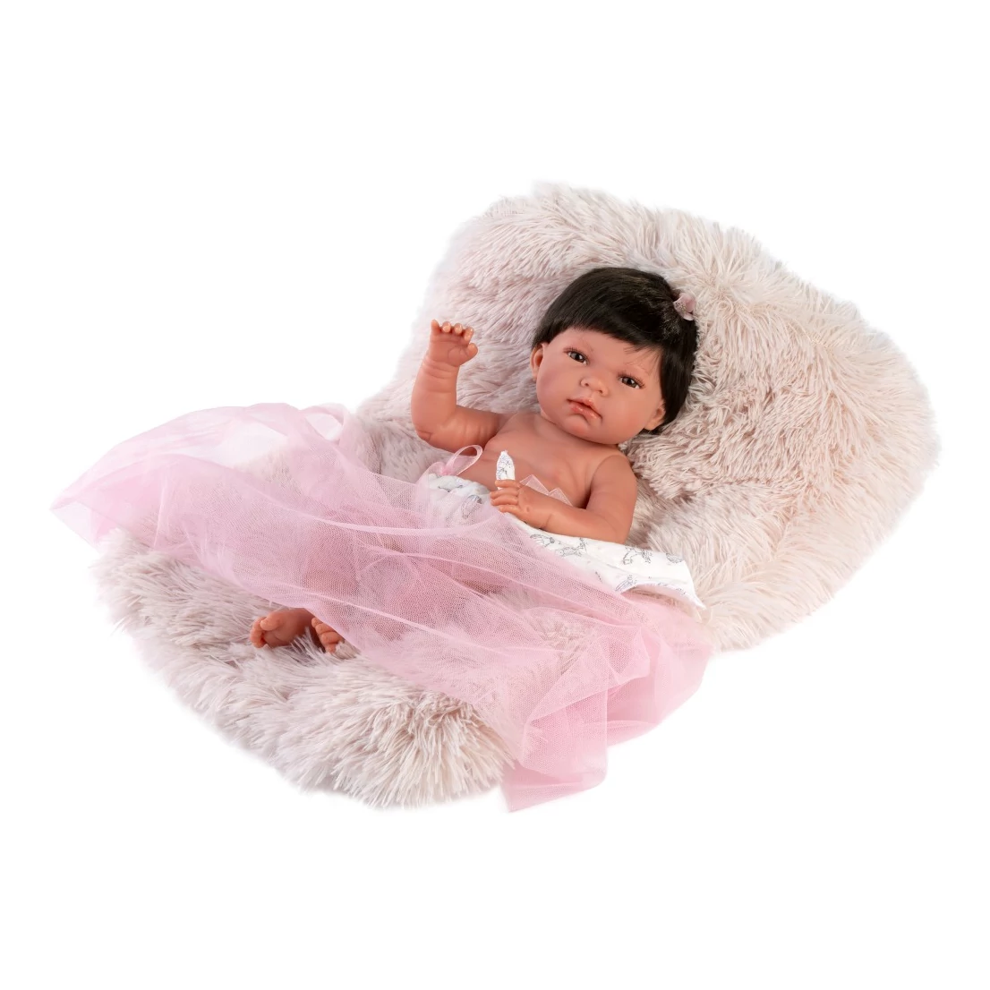Llorens: Nica 40cm-es baba szőrös szürke párnával