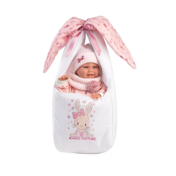 Llorens: Nica 40cm-es újszülött baba nyuszis hordozóval