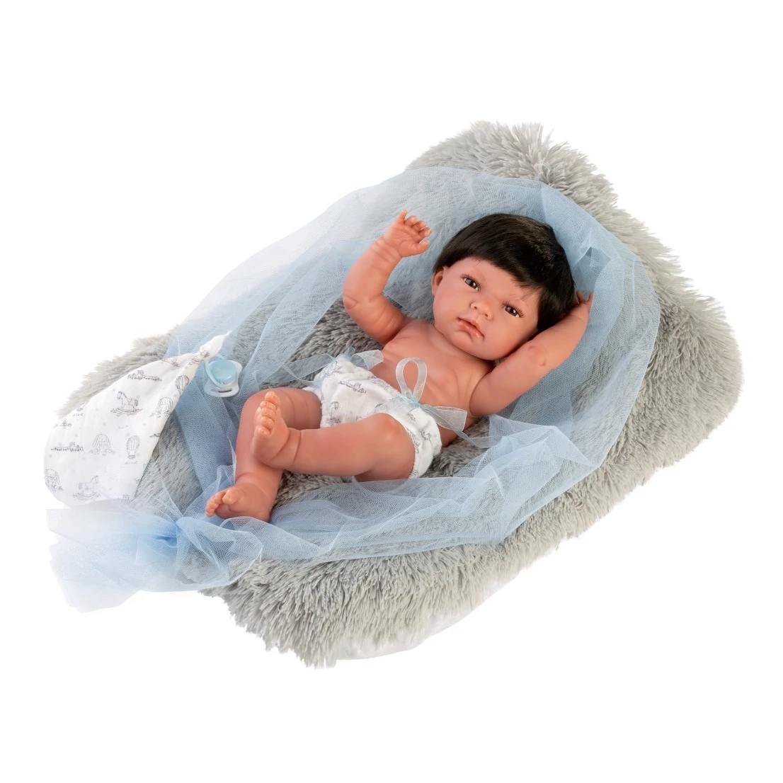 A Llorens Nico baba, aki 40 cm magasságával és szőrös szürke párnájával varázsolja el a gyerekeket! A Nico baba műanyag testének köszönhetően rendkívül tartós, így a gyermeki játék során felmerülő kalandoknak is bátran áll ellen. Az élethű kidolgozás és a részletgazdag kialakítás révén, mint például az aprólékosan megformált kezek és lábak, a Nico baba tökéletesen utánozza egy igazi kisbaba megjelenését. A cumi, ami a babával érkezik, nem csak a valósághű játékot teszi teljessé, hanem megnyugtató tárgy is lehet a baba számára. A szürke párnával együtt Nico tökéletes választás lehet minden gyermek számára, aki egy új barátra vágyik. A Llorens prémium minőségű spanyol babák mindegyike kézzel készített, kiemelkedően részletgazdag kidolgozással bír és gondosan kiválasztott alapanyagok felhasználásával készül, hogy a legmagasabb minőségi követelményeknek is megfeleljen. A baba egy csodaszép díszdobozban érkezik, így gyerekeknek és gyűjtőknek egyaránt tökéletes választás.