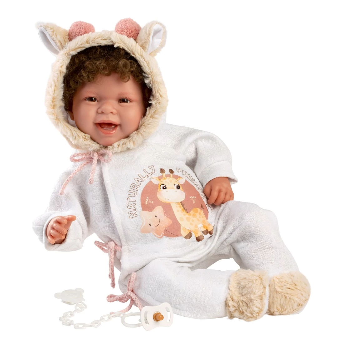 Llorens: Tala Sonrisas 44cm-es újszülött baba hanggal zsiráfos ruhában