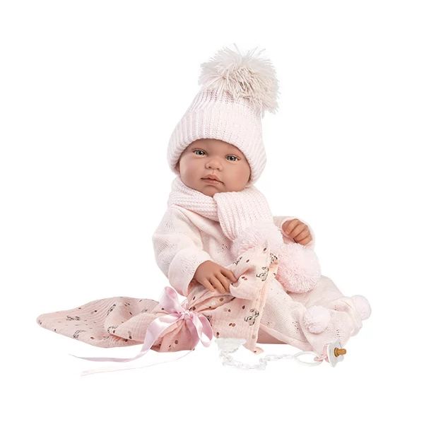 Llorens: Tina újszülött baba rózsaszín szettben babatakaróval és cumival 43cm