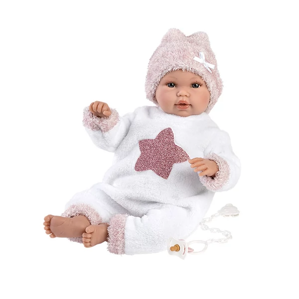 Llorens: Újszülött síró lány baba csillagmintás plüss pizsamában 36cm