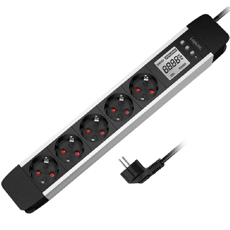 Logilink 5 utas aljzatcsík, LCD kijelző, valós idejű energiafogyasztás/CO2 kibocsátás