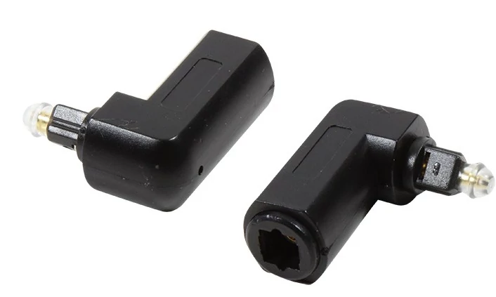 Ez az aranyozott érintkezőkkel ellátott Toslink adapter 90°-os szögben dől el, és lehetővé teszi a szabványos Toslink kábel csatlakoztatását olyan helyekre, amelyek nehezen hozzáférhetők, például falra szerelt TV-knél.