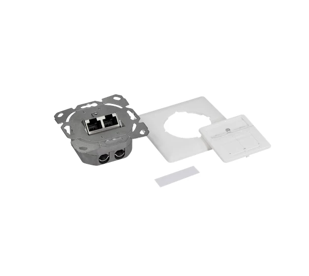 Árnyékolt Cat.6A hálózati aljzat két ferde RJ45 porttal. Az 500 MHz-ig meghatározott aljzat minden adatátvitelre alkalmas 10 Gigabit Ethernetig, beleértve a PoE-t és a PoE+-t. A stabil, horganyzott présöntvény ház kombinált árnyékolási érintkezővel és húzásmentesítéssel alkalmas süllyesztett vagy kábelcsatornába történő beépítésre. Alkalmas felületi beépítésre is az NP0223 hátsó doboz használatával.