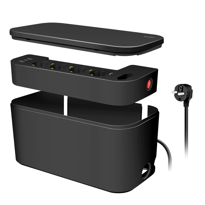 Logilink Kábeldoboz 5 utas csatlakozóaljzattal, 3x USB, 285 x 145 x 13 mm, fekete