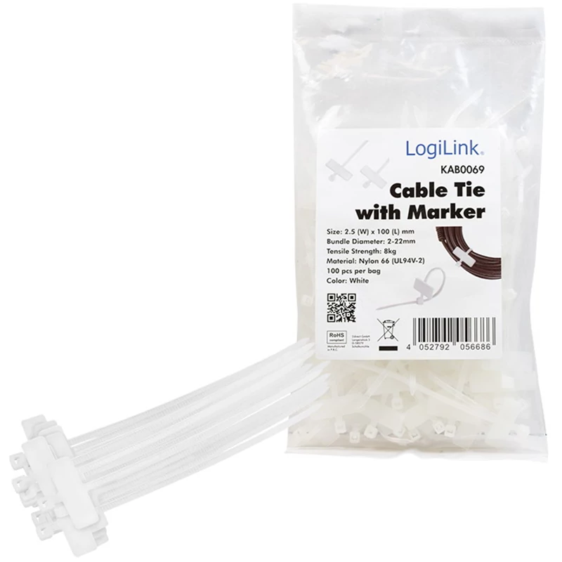 Logilink Kábelkötegelő jelölővel, PA66, 100 db
