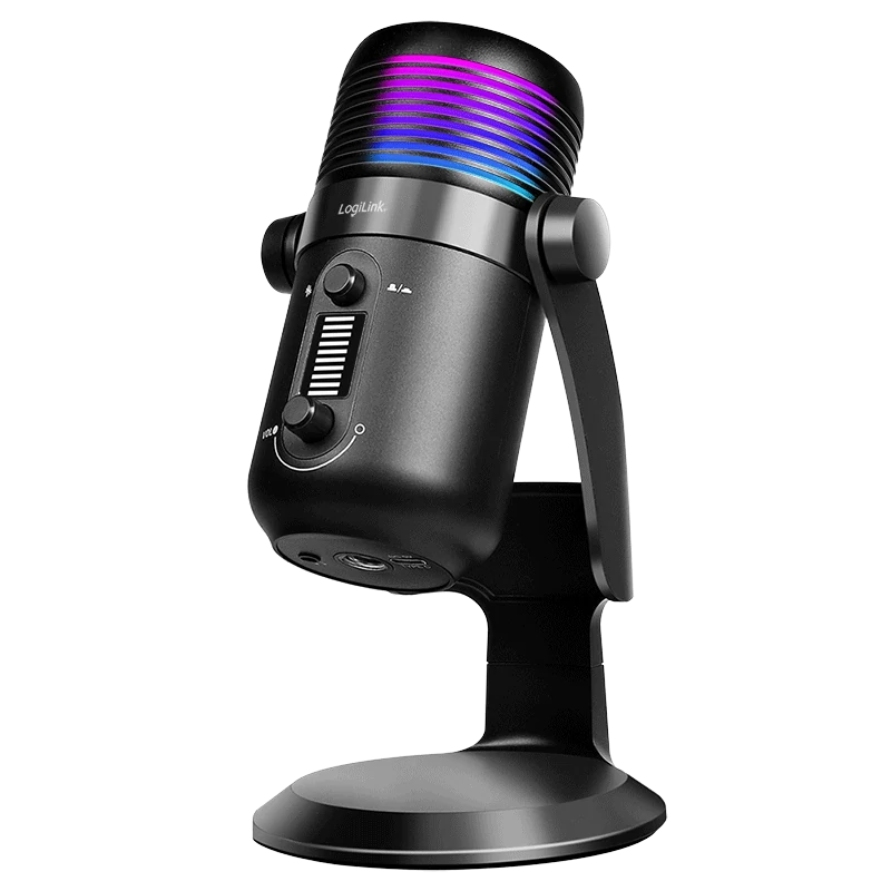Logilink Mikrofon, kardioid, NRC, 192 kHz@24 bit, RGB világítás, streaming, podcast, stúdió