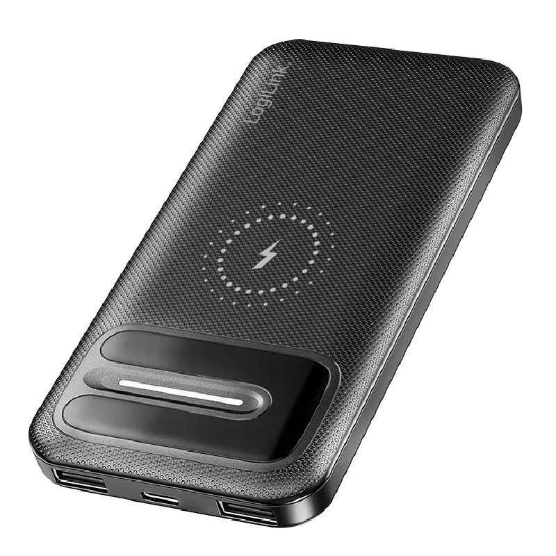Logilink Power bank 10000 mAh, vezeték nélküli töltés + 2x USB-A, 1x USB-C