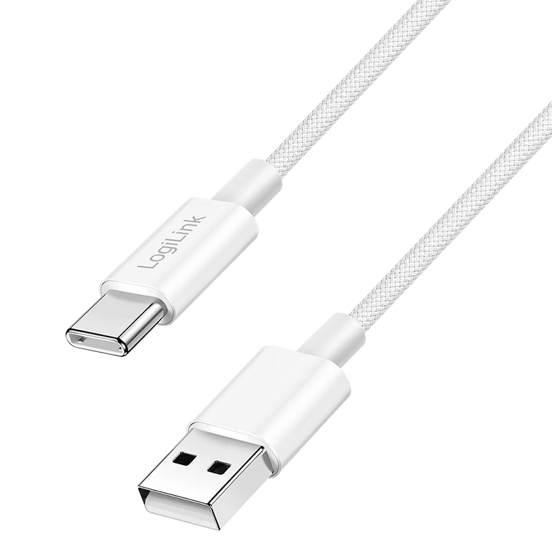 Logilink USB 2.0 Type-C kábel, C/M - A/M, 480 Mbps, 60W, nejlon, fehér, 0,5 m