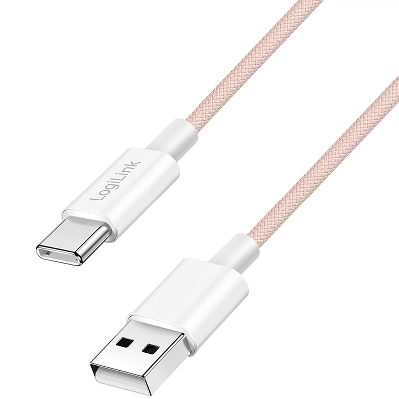 Logilink USB 2.0 Type-C kábel, C/M - A/M, 480 Mbps, 60W, nejlon, rózsaszín, 1 m
