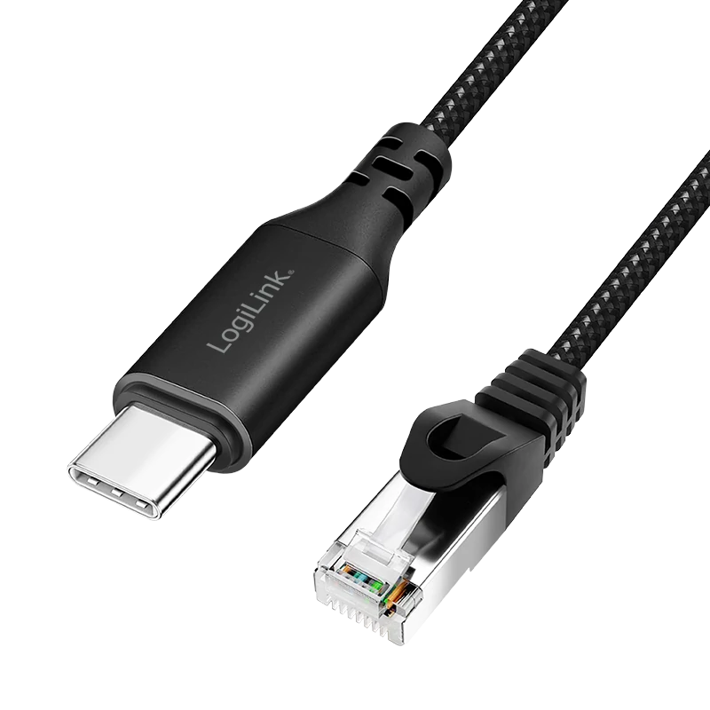 Logilink USB 3.2 Type-C Ethernet kábel, C/M RJ45/M, 1 Gbps, aktív, fekete/szürke, 3 m