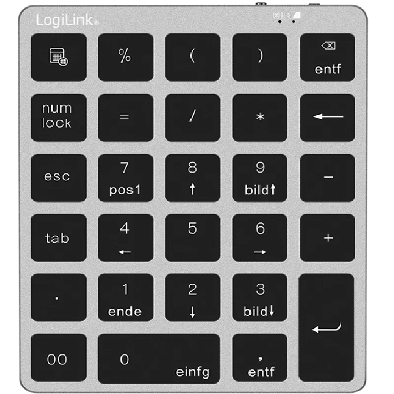 Logilink Vezeték nélküli, 28 gombos billentyűzet BT 5.0-val, ollós mechanizmussal, szóközszürke