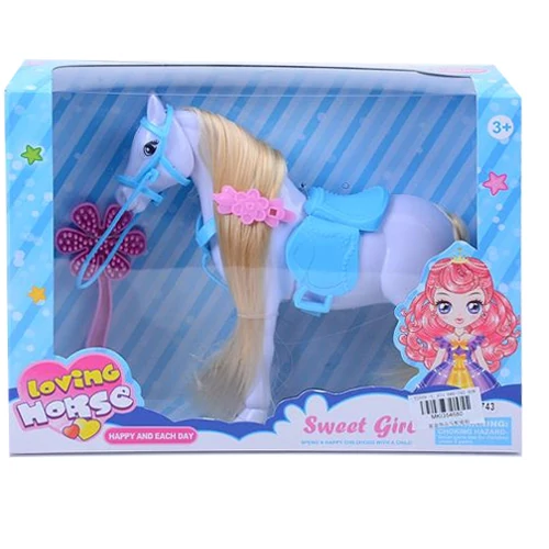 Egy csodaszép hófehér paripával ismerkedhetsz megh ennek a doboznak köszönhetően. A szép fehér ló egy kényelmes nyereggel érkezik és rendkívül hosszú sörénnyel és farokkal. Hogy midig szép legyen, neked kell majd nap mint nap szép selymesre fésül a paripa sörényét, és ehhez a készletben egy fésűt is találsz. Ha végeztél, akkor a tükör segítségével mutasd meg a lónak, hogy milyen csodás lett, aki ezt biztos, hogy nagyon fogja értékelni. Díszítsd a ló sörényét kiegészítőkkel vagy fonatokkal, hogy még egyedibb és szebb legyen.