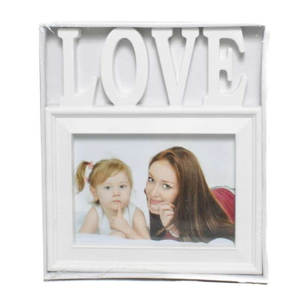 - Modern fotókeret LOVE felirattal fekvő képhez, fából. Szép dísze minden szobának.