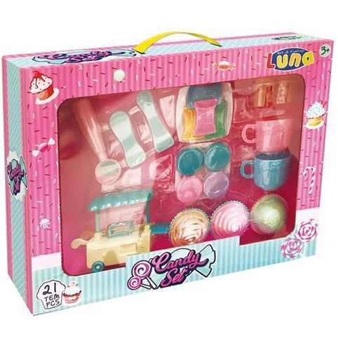 Gyönyörű színvilággal rendelkező süteményekkel találkozhat gyermeked ebben az ínycsiklandó édességeket tartalmazó szettben, amely ráadásul egy zsúrkocsit is tartalmaz. A csomag három darab muffint és további különböző nyalánkságokat is tartalmaz. Az étkészlet és a két darab csésze kiválóan használható egy teadélután ideje alatt, a sütiket pedig a játékkonyha sütőjében könnyedén elkészítheti gyermeked.