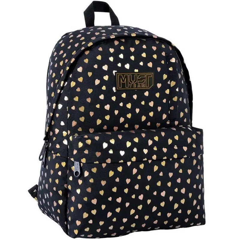 Luna: Must fekete-arany szívecskés hátizsák 1 rekeszes 32x17x42cm